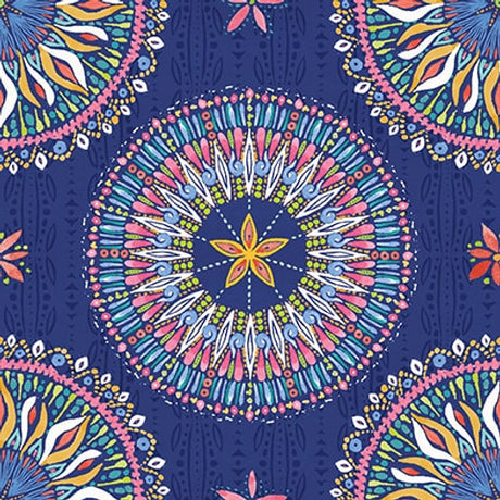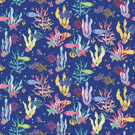 Along the Coast, from Blank Quilting, Dark Blue Mandala Allover Fish by the yard