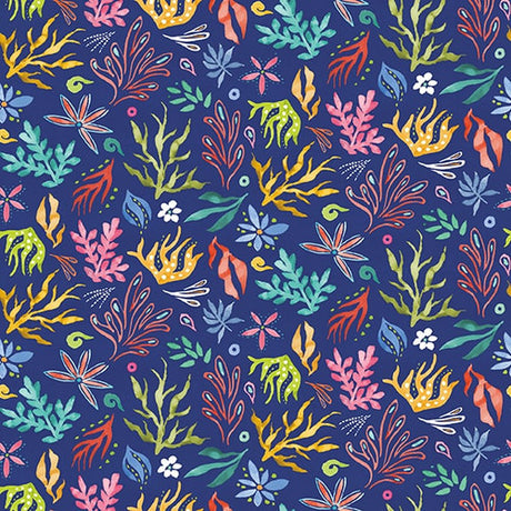 Along the Coast, from Blank Quilting, Dark Blue Tossed Seaweed by the yard