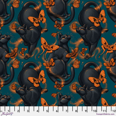 Moth Cat - Turquoise || Mystic Moonlight by the yard from Rachel Hauer