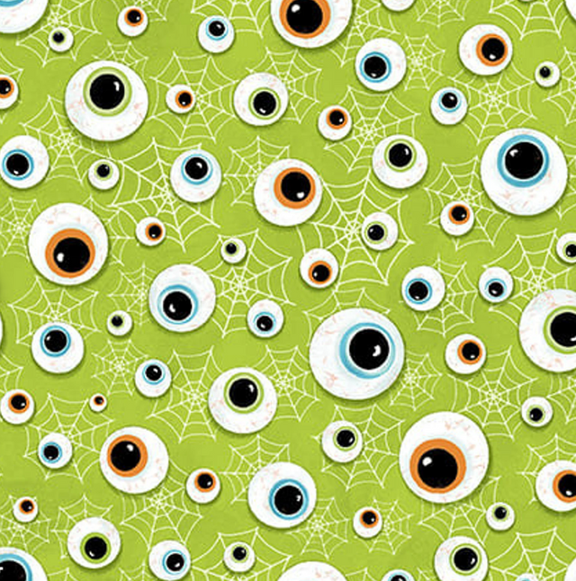 Henry Glass Welcome Foolish Mortals Eyeballs and Webs Green by the yard is backordered and will ship as soon as it is back in stock.