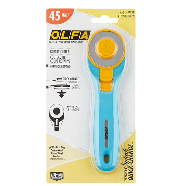 Olfa Splash Aqua 45mm Rotary Cutter is backordered and will ship as soon as it is back in stock.