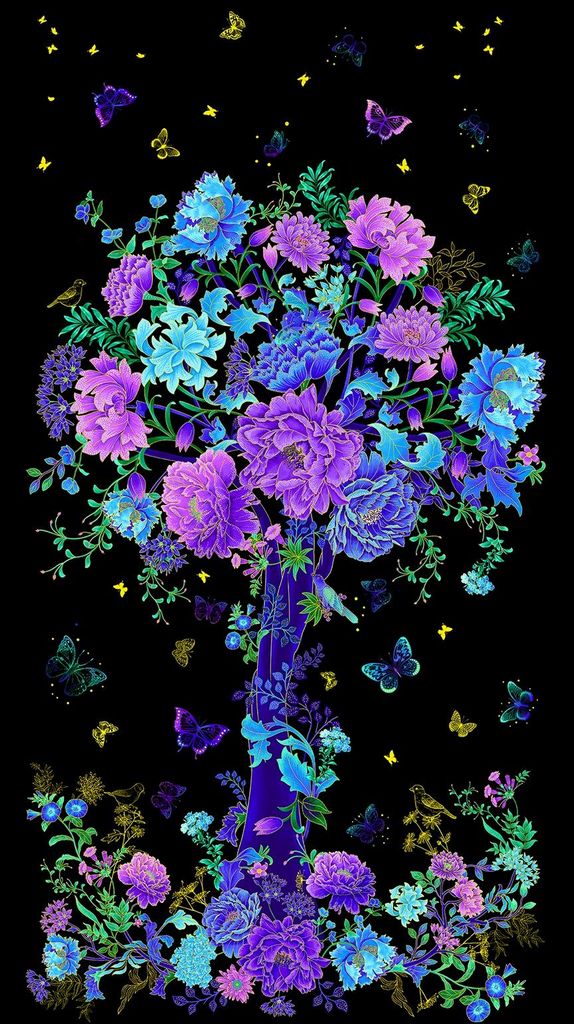 METALLIC FLORAL TREE PANEL 24" BY TIMELESS TREASURES, by the yard